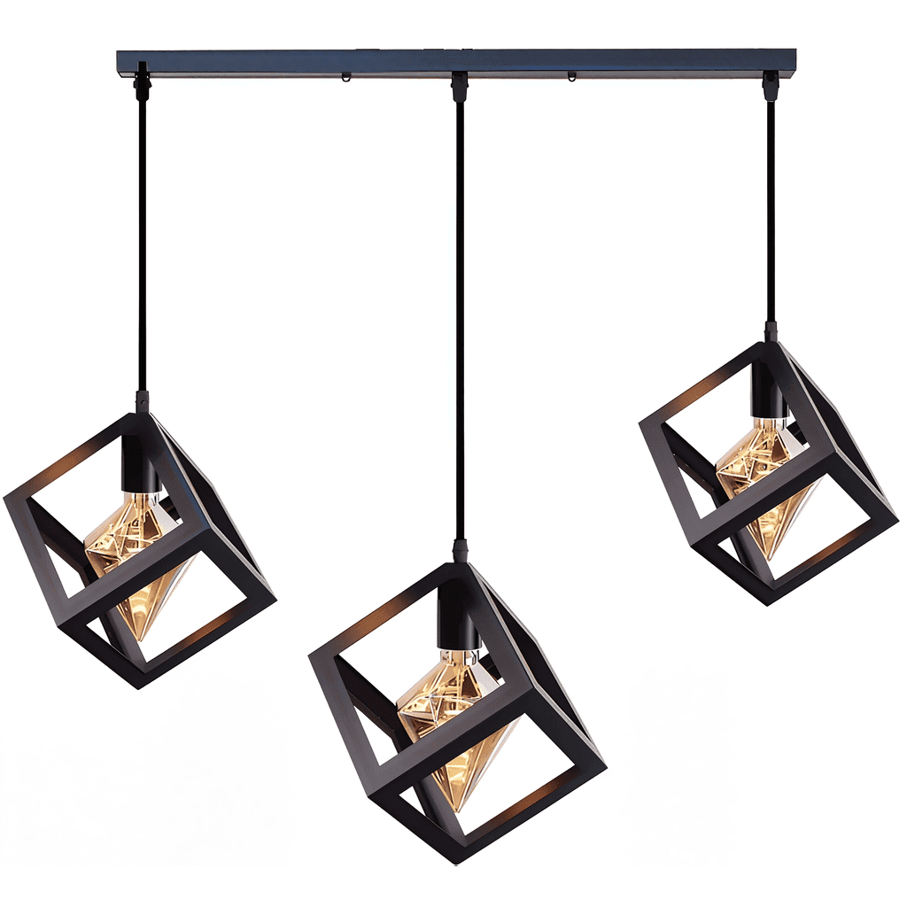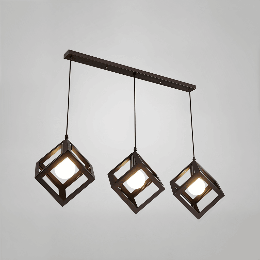 Elevate your space with the ModuLine Cube Pendant, a sleek, geometric lighting fixture designed for modern interiors. Featuring three cube-shaped wireframe lights suspended at varying heights from a linear mount, it adds depth and character to dining rooms, living spaces, or commercial settings like cafes and offices.
